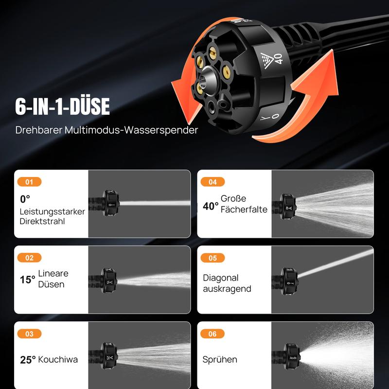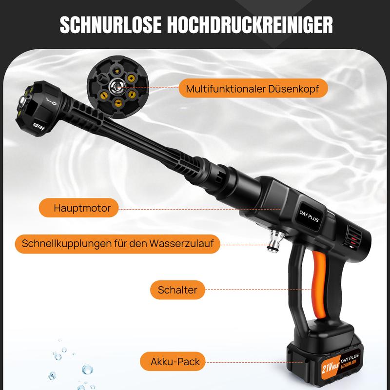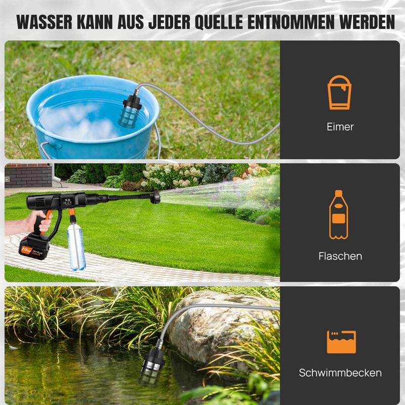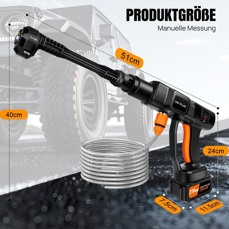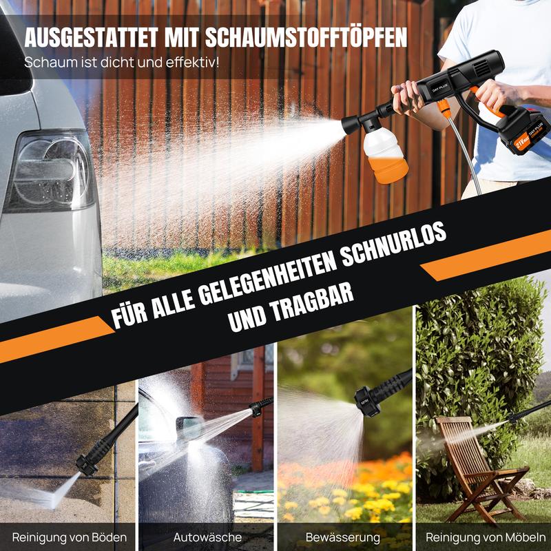Akku Hochdruckreiniger 45bar/653PSI mit 2X3000mAh Akku, 180° verstellbare Düse und 5M Schlauch für Auto und Blumenbewässerung