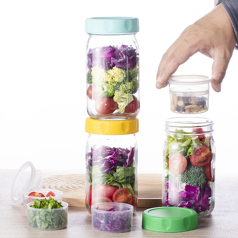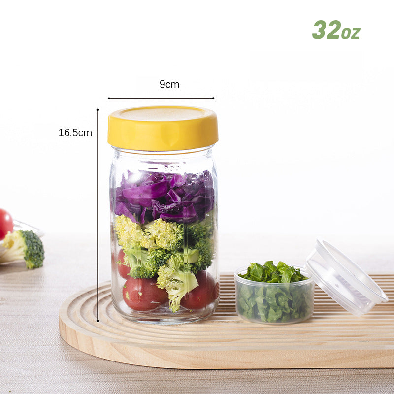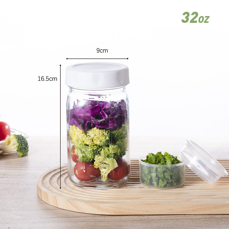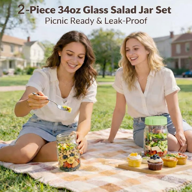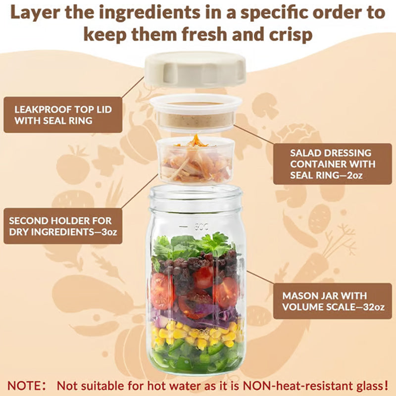VIELSEITIGER MULTIFUNKTIONALER GLAS - Dieser Behälter eignet sich nicht nur für Salate. Er ist perfekt zum Schichten von Joghurt-Parfaits, zur Aufbewahrung von Overnight Oats oder zum Verpacken von Snacks und somit eine unverzichtbare und äußerst vielseitige Ergänzung für Ihren Alltag.