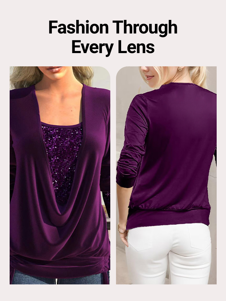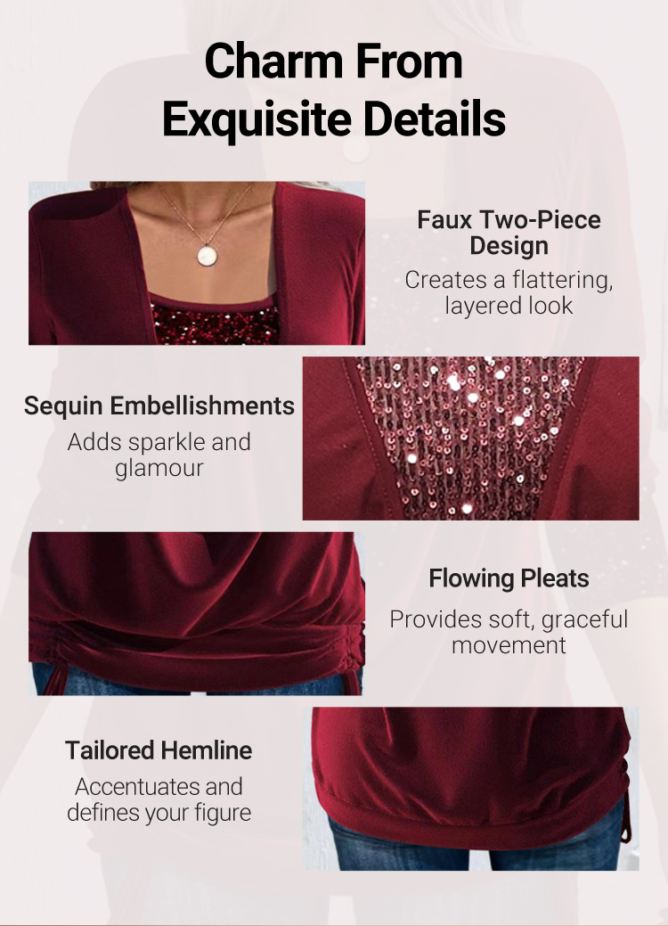 ✨🎅Weihnachtsangebote – Nur für kurze Zeit!⏰Damen-Langarmhemd mit Pailletten