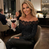 Damen-Spitzenoberteil mit schulterfreiem Ausschnitt und Glitzer, langärmelig